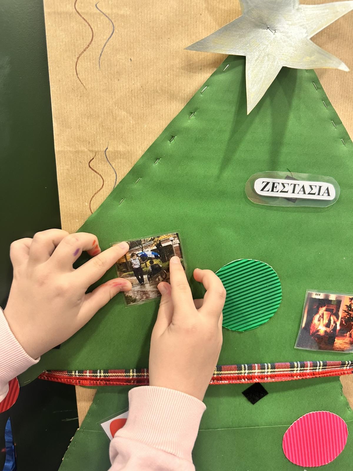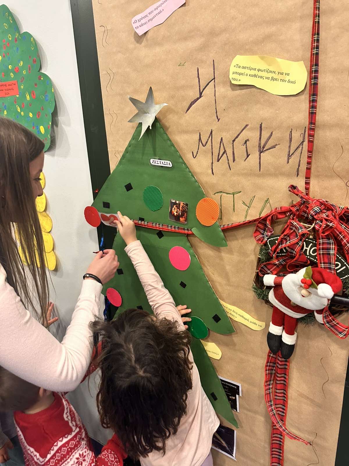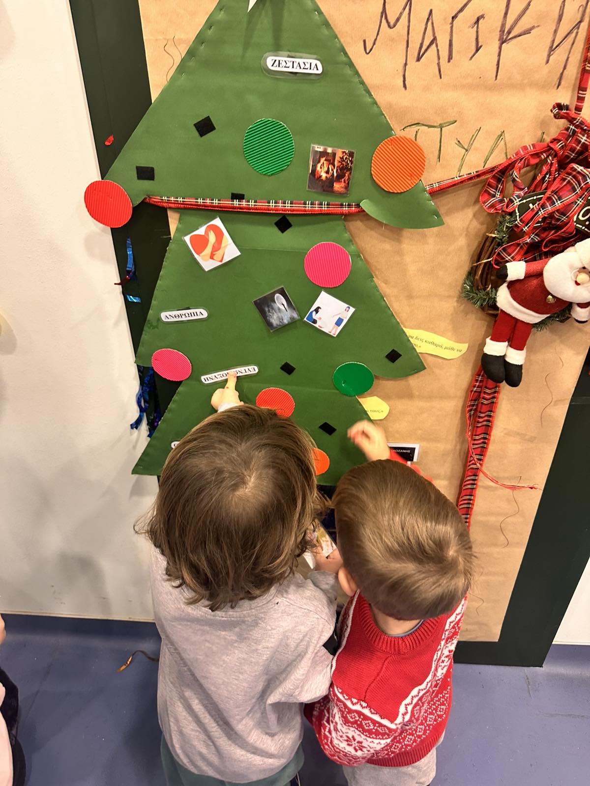 Μέσα από ένα παιχνίδι «κρυμμένου θησαυρού», τα παιδιά ανακάλυψαν χριστουγεννιάτικα στολίδια, τα οποία τους οδήγησαν σταδιακά στην κατανόηση του ουσιαστικού νοήματος των Χριστουγέννων. Με βιωματικό και δημιουργικό τρόπο, μιλήσαμε για την αγάπη, την προσφορά, την ζεστασιά, την οικογένεια και τη χαρά του να μοιραζόμαστε.