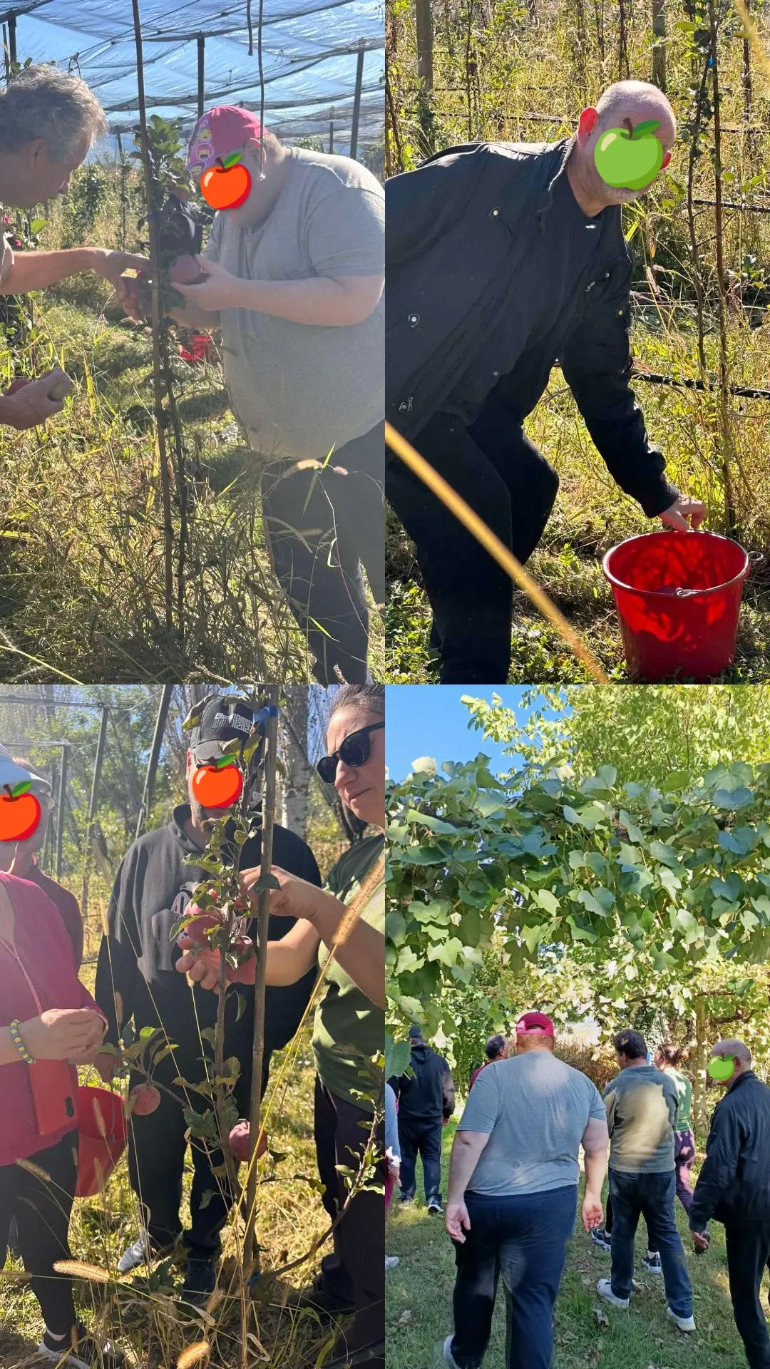 Από την πρώτη στιγμή, το αγρόκτημα μάς μετέδωσε μια αίσθηση ηρεμίας και αυθεντικής επαφής με τη φύση. Περιηγηθήκαμε στους οπωρώνες με τα φρούτα, στον λαχανόκηπο, στις παραδοσιακές ποικιλίες μήλων και σταφυλιών και στις εκτάσεις των δέντρων, μαθαίνοντας για την αξία της βιολογικής καλλιέργειας. Η αγροτική εμπειρία, όμως, δεν σταμάτησε εκεί! Οι ωφελούμενοι συμμετείχαν ενεργά στη συγκομιδή, συλλέγοντας μήλα, καρύδια και μούρα.