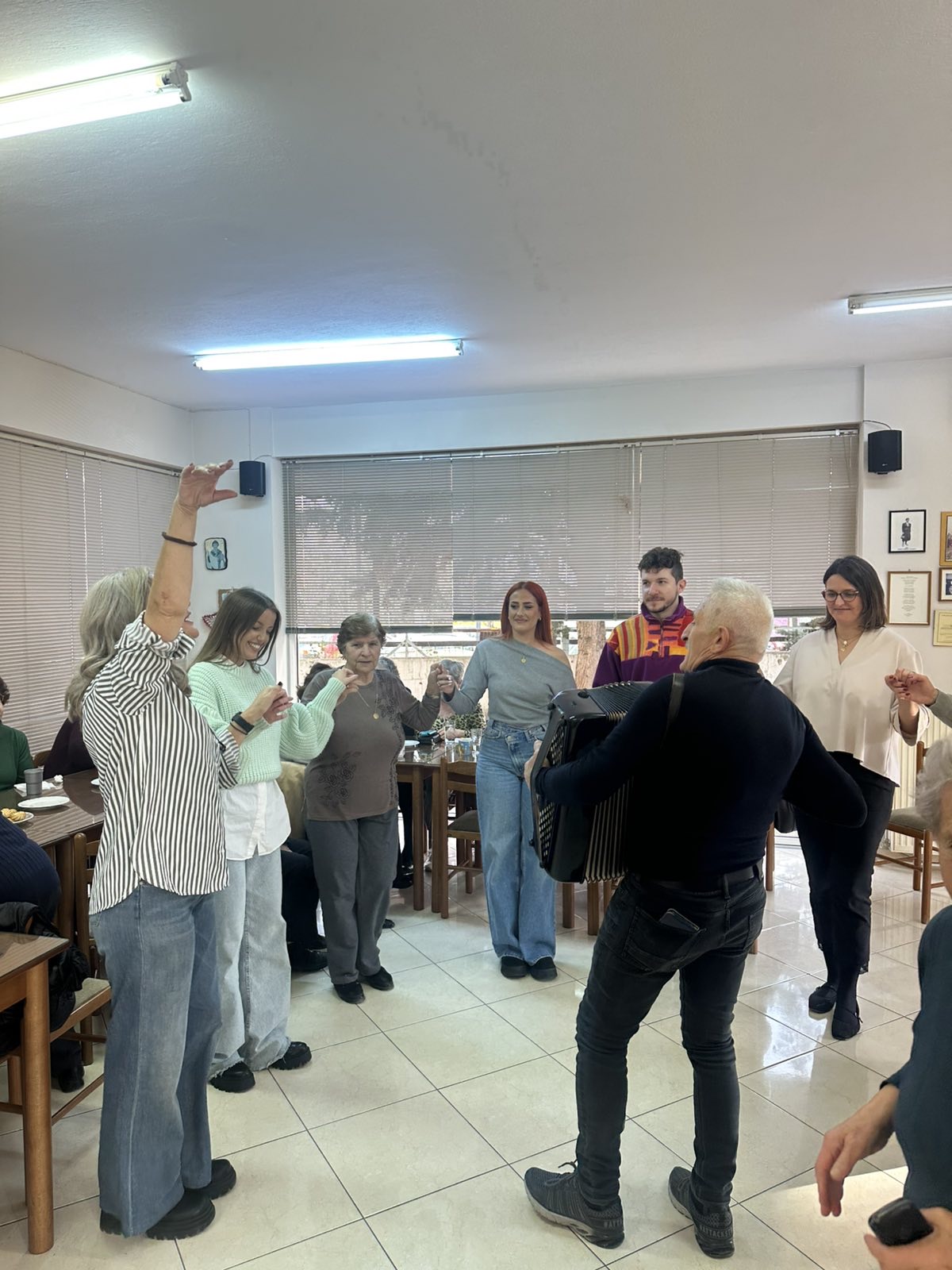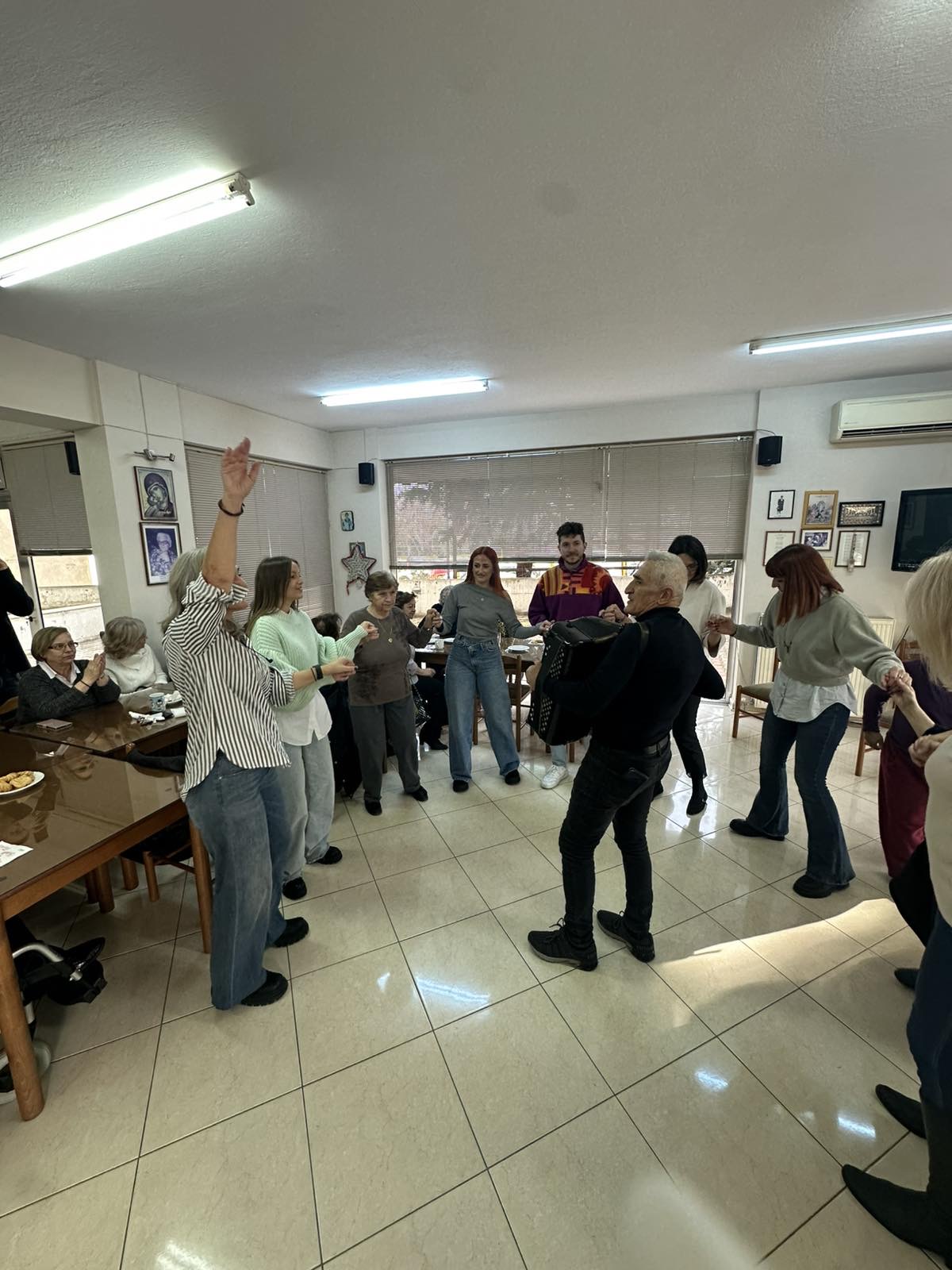 Η εκδήλωση πλαισιώθηκε μουσικά από τον κ. Γιάννη Αποστολίδη, ο οποίος με το ακορντεόν του δημιούργησε μια όμορφη και χαρούμενη ατμόσφαιρα. Χορέψαμε, τραγουδήσαμε και περάσαμε όλοι μαζί όμορφες στιγμές, γεμάτες κέφι, συγκίνηση και ανθρώπινη επαφή.