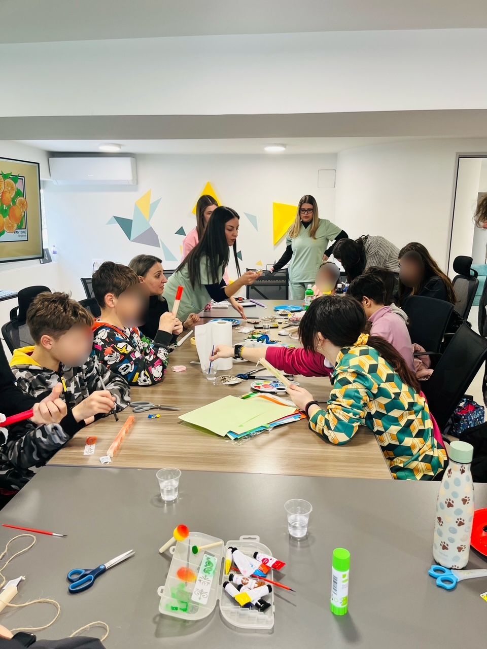 Οι μαθητές, συνοδευόμενοι από την κοινωνική λειτουργό κα Εύη και την καθηγήτρια καλλιτεχνικών κα Αναστασία, συμμετείχαν μαζί με τα παιδιά της δομής μας στη δημιουργία πασχαλινών λαμπάδων, ανταλλάσσοντας χαμόγελα, ιδέες και μοναδικές στιγμές.